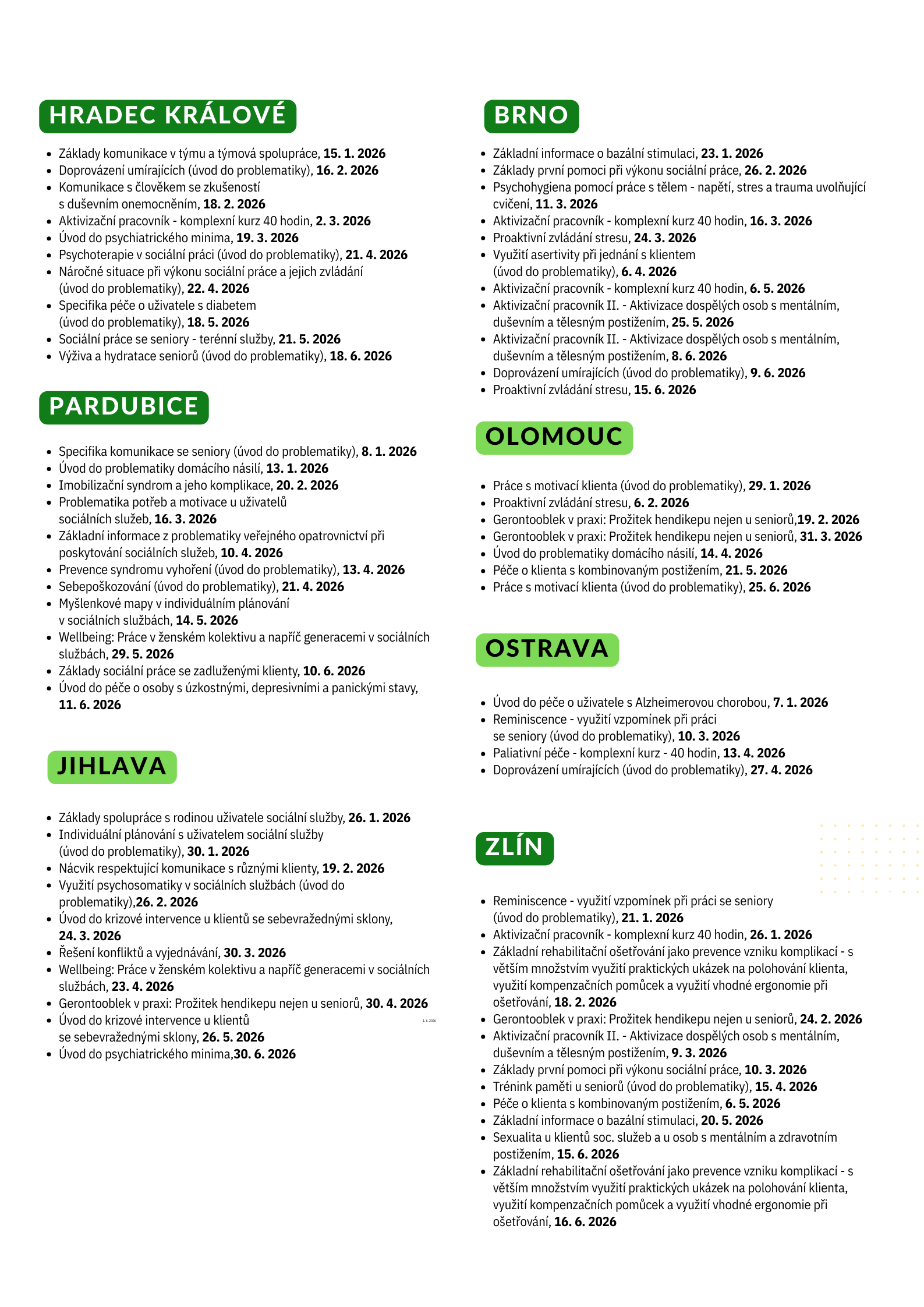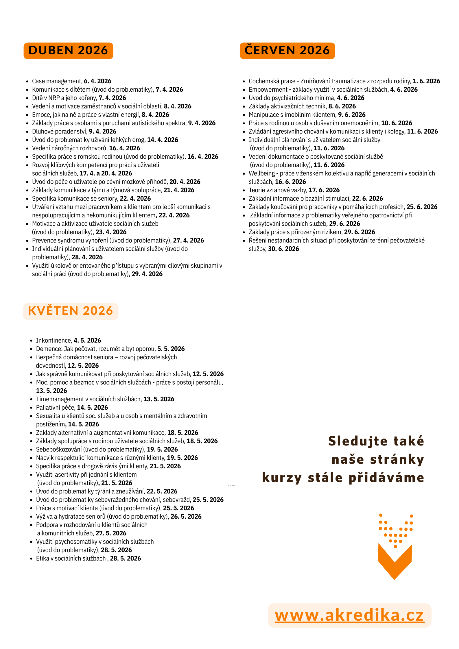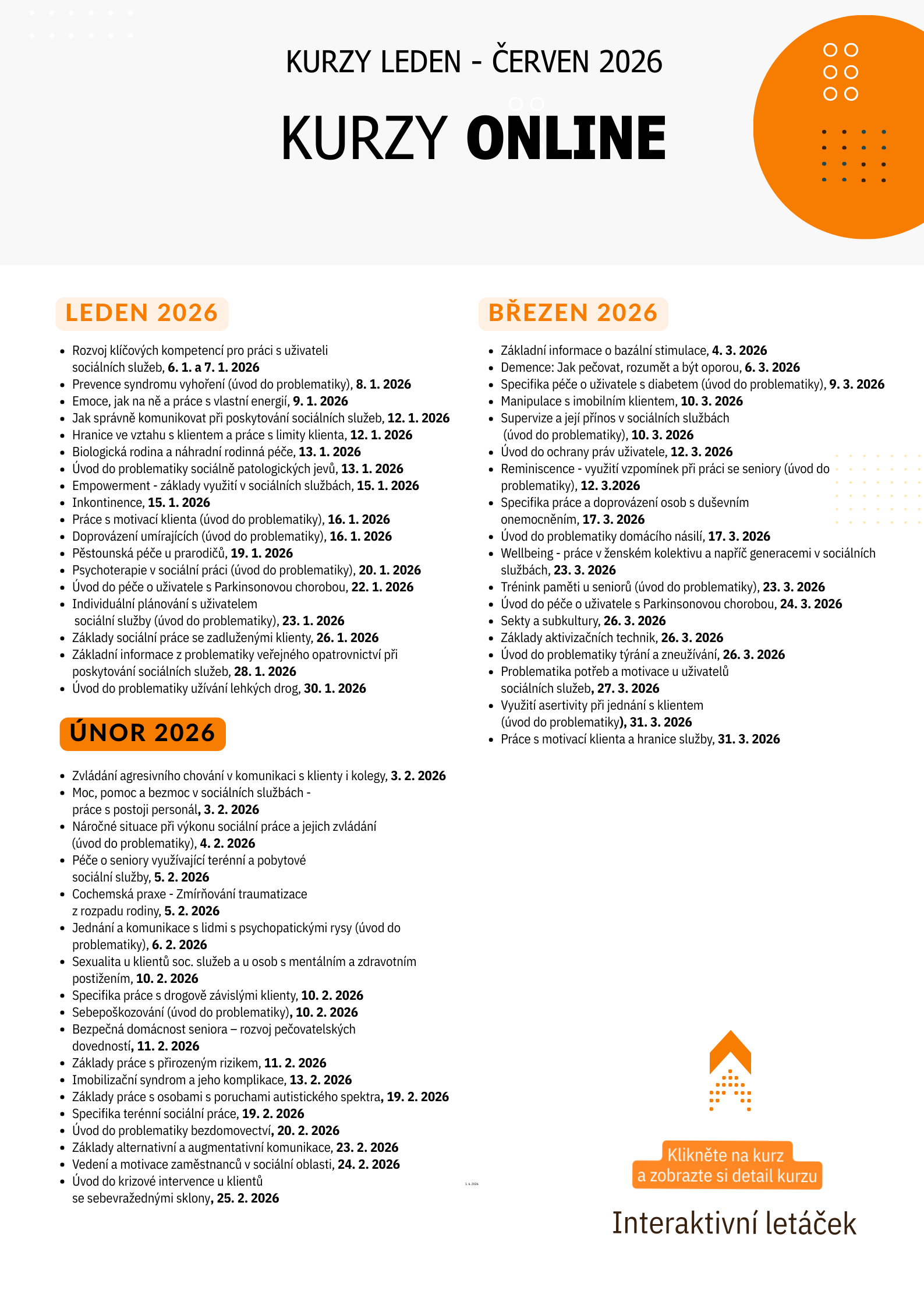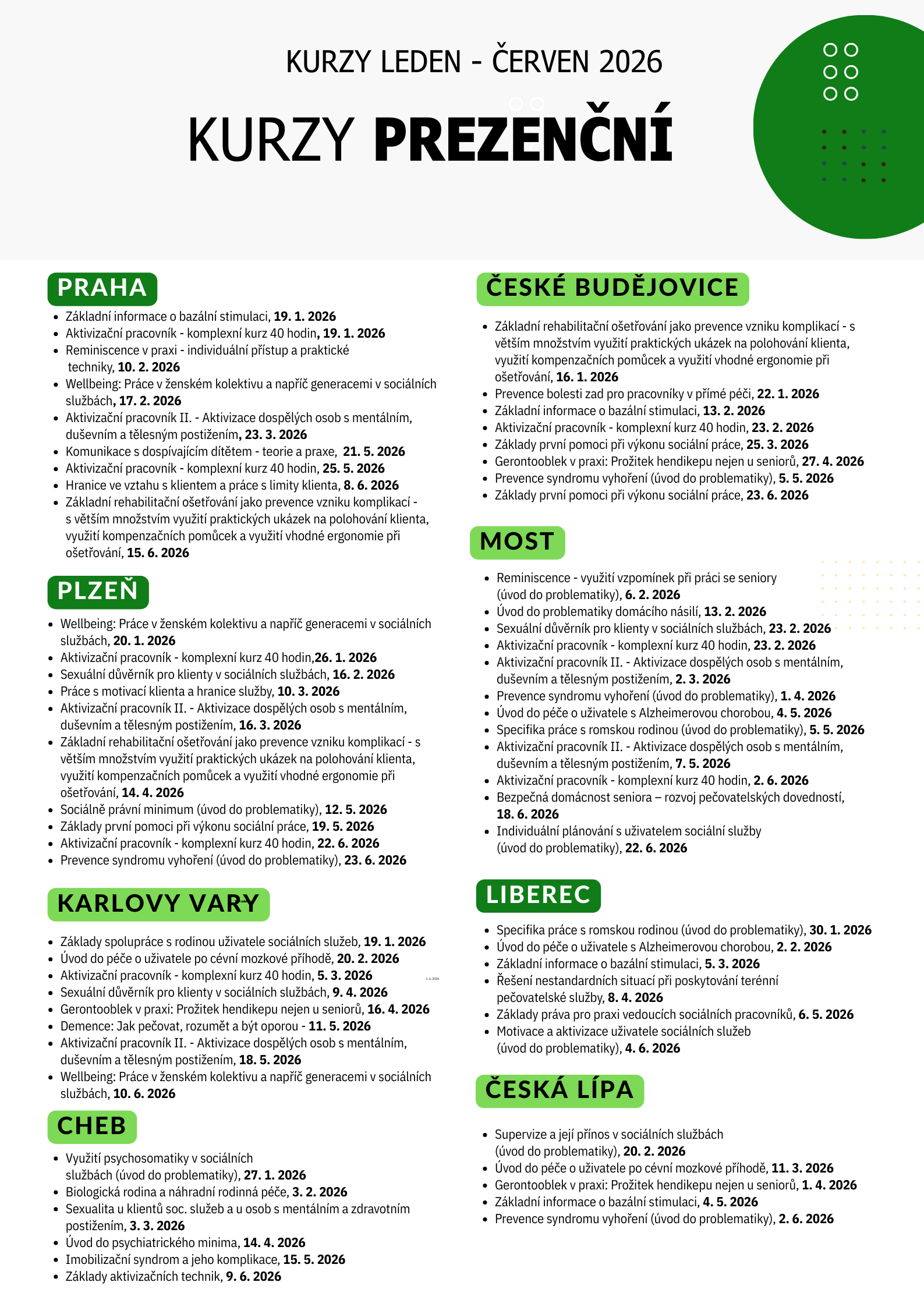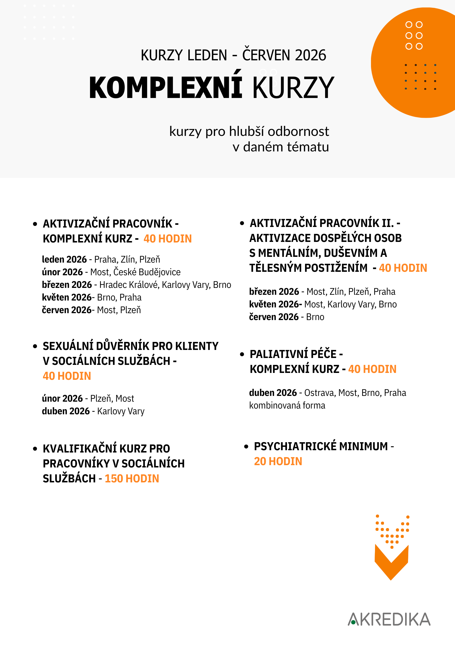 Akreditované kurzy pro sociální a zdravotní oblast s pravidelnými online i prezenčními termíny pro jednotlivce nebo