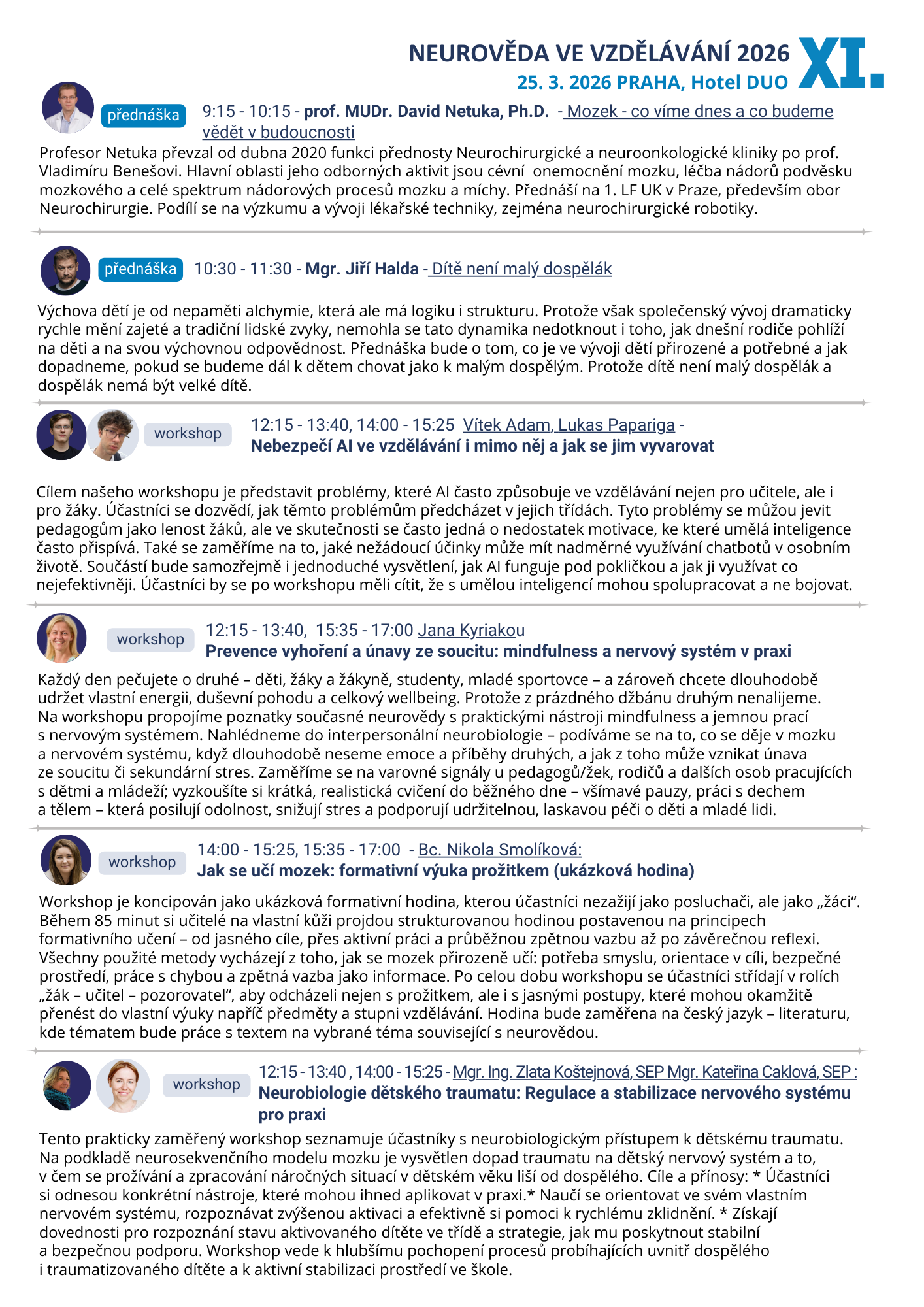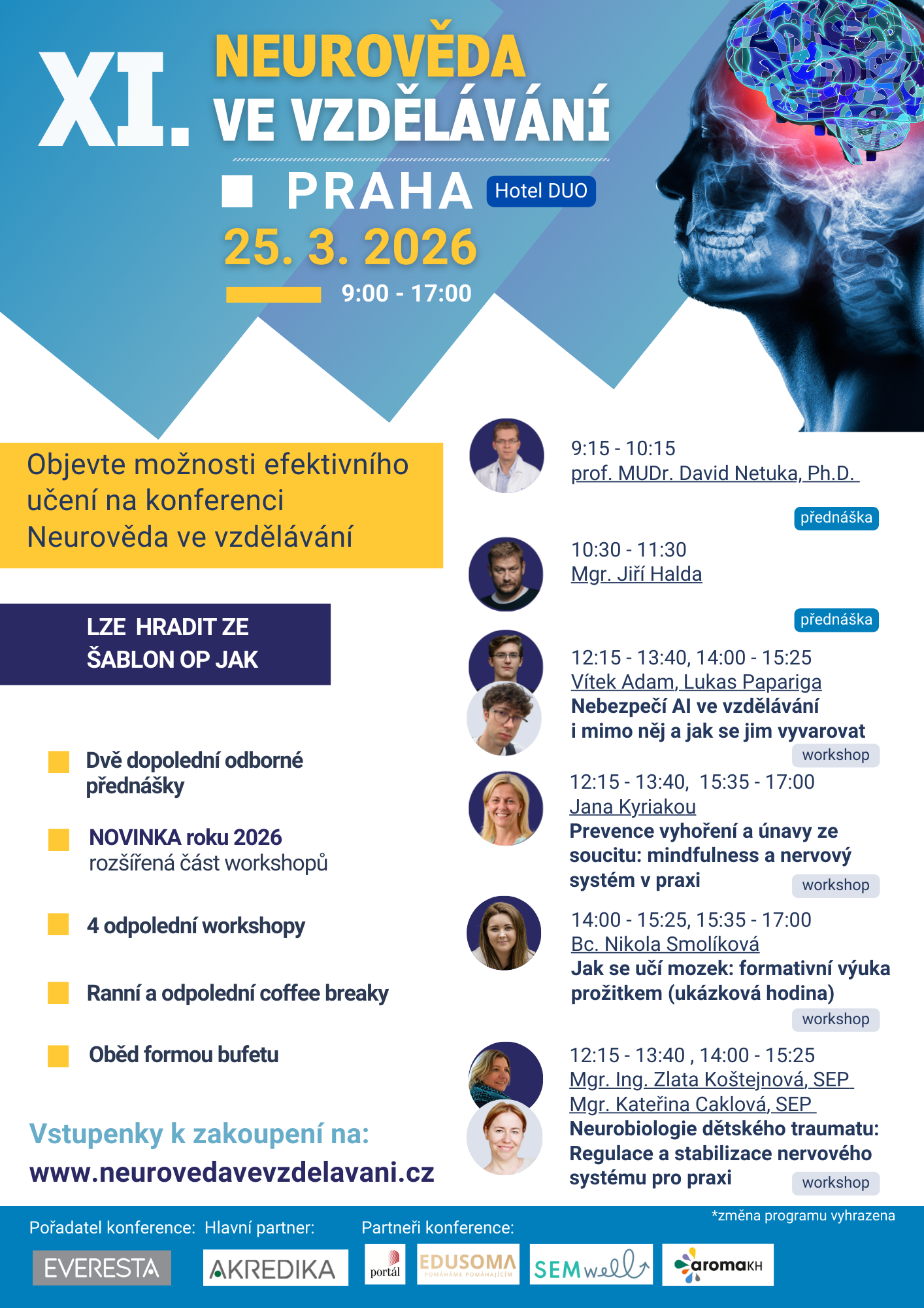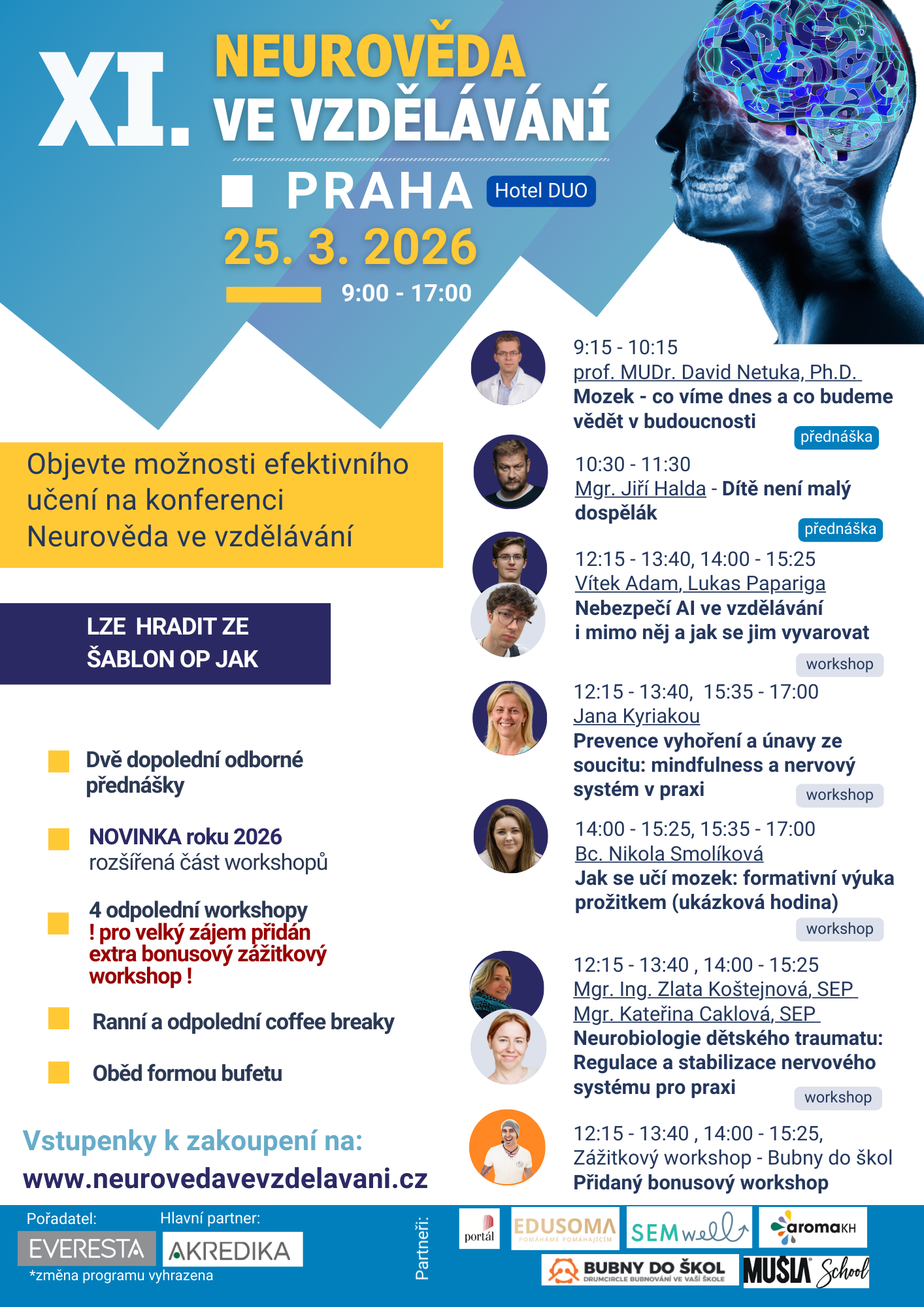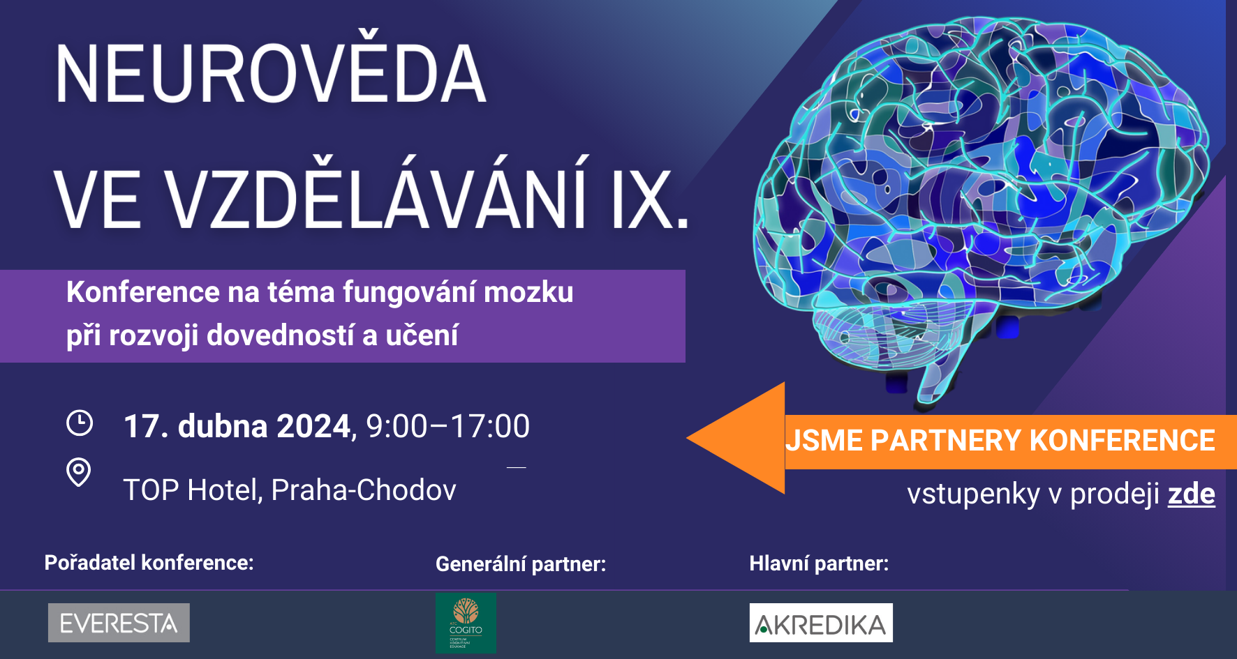 Nenechte si ujít naší oblíbenou konferenci, určenou pro pedagogy a ředitele škol s přesahem také pro sociální pracovníky, psychology, lektory nebo HR manažery i rodiče, kteří chtějí na základě poznatků neurovědy porozumět fungování mozku porozumět fungování mozku a pomocí nových metod využít zefektivnit vzdělávání – sebe, studentů, žáků či zaměstnanců. Více o konferenci a předprodej vstupenek zde.