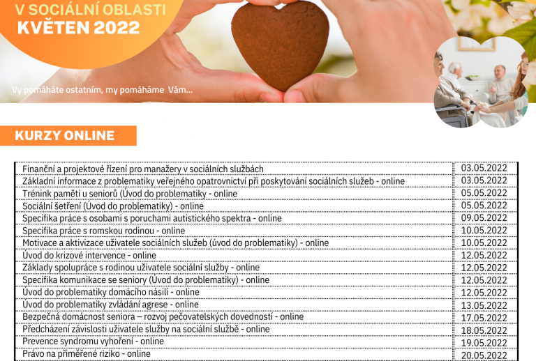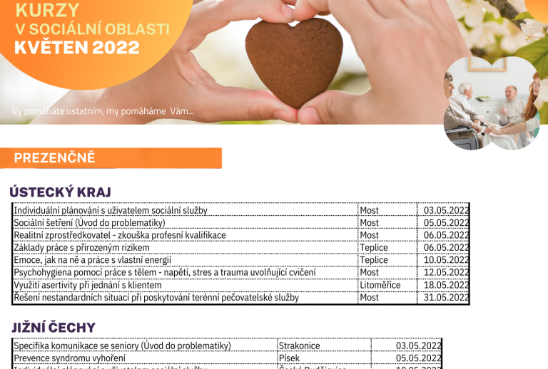 Vyberte si z naší nabídky prezenční kurz pro pracovníky v pomáhajících profesích, který můžete v květnu absolvovat na našich pobočkách: Plzni, Karlov&yacut...